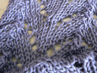 My next WIPocalypse update is sure to be rather weak, because I've been spending time learning to knit lace. I call it learning to put holes in knitting on purpose, rather than accidentally (that, of course, is something at which I excel). I completely missed the teacher's discussion about a very important element, so I spent several days trying to figure out why my journey through the laid out stitches wasn't working. I fixed it by adding more ... blah, blah, blah ... I am a stooge at knitting. The second class helped a lot, and now I can do it. Here's some proof.