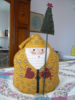 For those of you keeping score, that's my second finish of a WIP this year. I haven't been resting on my laurels (such as they are) since I finished Santa. I started a new pair of socks (no picture yet) ... well, two new pair ... long story for another time. I started the EEF Napa Valley Sampler that will be a gift for friends, but I haven't made enough progress yet to show you a picture.