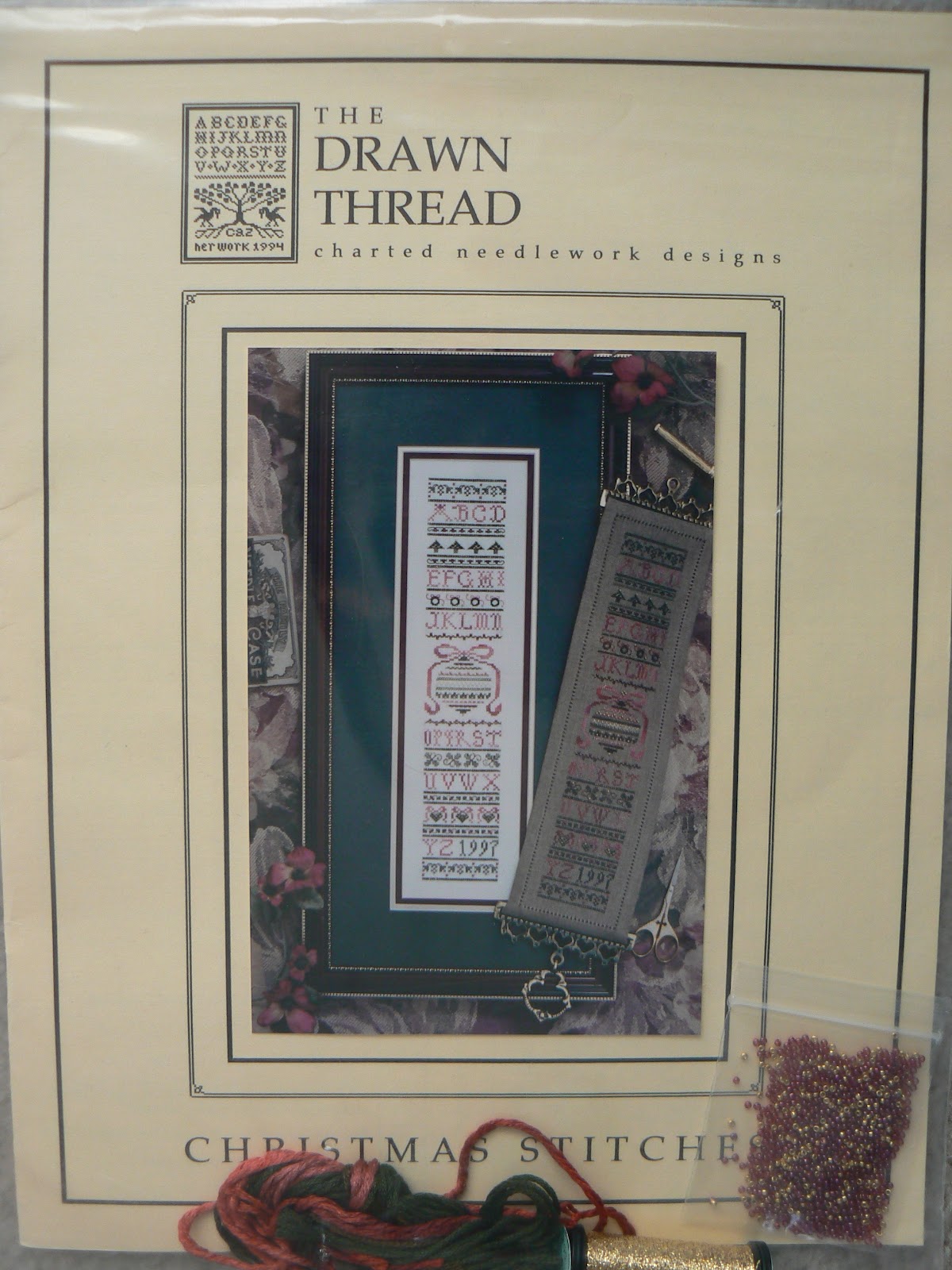 Lastly, I offer you my Napa Valley Sampler chart, along with its kitted fabric (I used a different one) and some of the kitted threads (the ones I didn't use). I won't put a picture here, but you can look at my April 15 post to check it out.