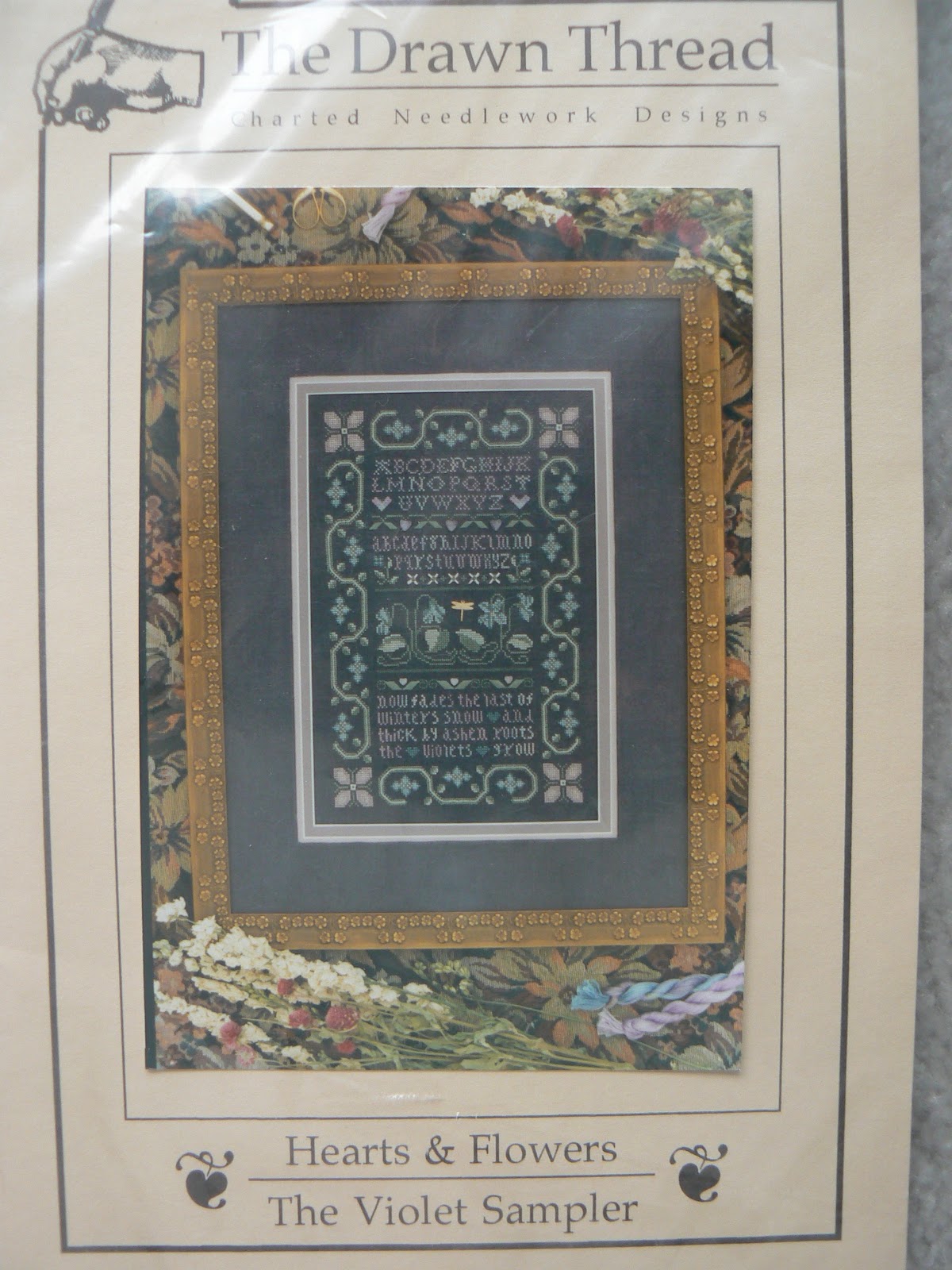 The Violet Sampler is a chart only, and you'll have to find a cute little dragonfly charm along with your supplies.